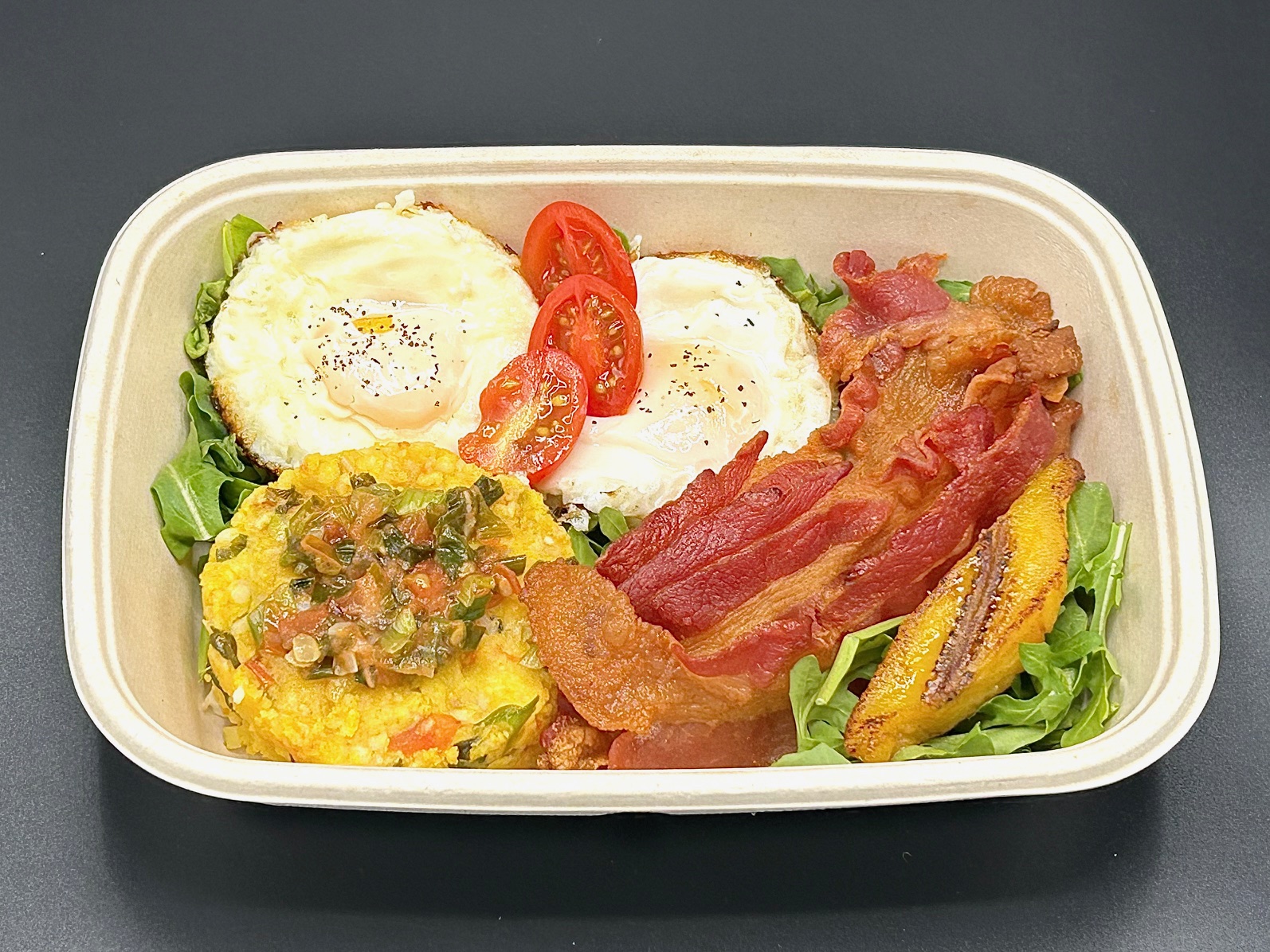 Savor the flavors of Colombia with our delectable Migas breakfast! This traditional dish features crispy corn arepa, fried eggs, crispy bacon, and sweet fried maduros for a perfect balance of savory and sweet. Each bite is a delightful fusion of textures and flavors that will transport your taste buds to the heart of Colombia. A hearty and satisfying way to start your day!
